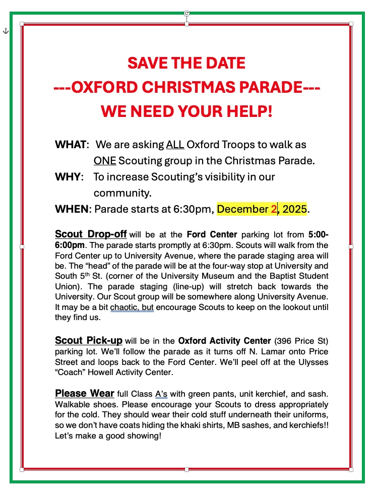 Located in Oxford, MS, Troop 45 is chartered by First Presbyterian Church